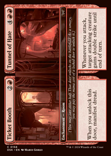 (You may cast either half. That door unlocks on the battlefield. As a sorcery, you may pay the mana cost of a locked door to unlock it.)