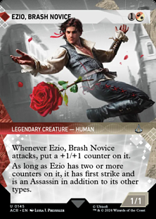 As long as this creature has three or more +1/+1 counters on it, it has flying and is a Knight in addition to its other types.
