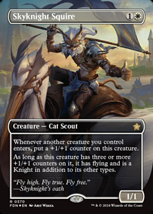 If Skyknight Squire enters at the same time as one or more other creatures you control, its first ability will trigger for each of those other creatures.