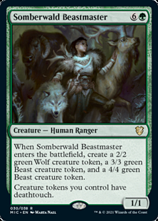 When this creature enters, create a 2/2 green Wolf creature token, a 3/3 green Beast creature token, and a 4/4 green Beast creature token.