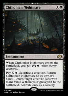 When this enchantment enters, you get {E}{E}{E} (three energy counters).