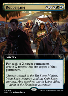 For each of X target permanents, create X tokens that are copies of that permanent.