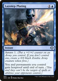 If you create a Zombie Army token when Lazotep Plating instructs you to amass 1, that token will gain hexproof until end of turn.
