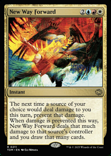 The next time a source of your choice would deal damage to you this turn, prevent that damage. When damage is prevented this way, New Way Forward deals that much damage to that source's controller and you draw that many cards.