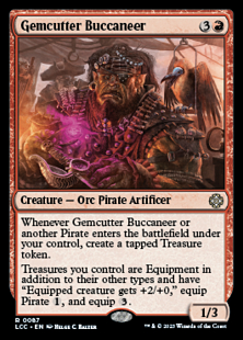 Whenever this creature or another Pirate you control enters, create a tapped Treasure token.