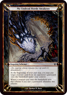 When a creature put onto the battlefield with this scheme dies, abandon this scheme.