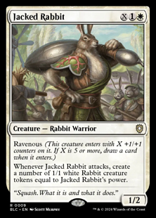 Whenever this creature attacks, create a number of 1/1 white Rabbit creature tokens equal to this creature's power.