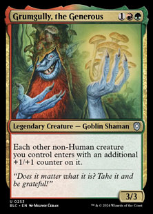 Commander creatures you own have "This creature enters with an additional +1/+1 counter on it" and "Other creatures you control enter with an additional +1/+1 counter on them."
