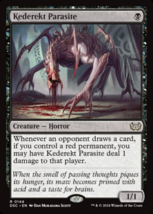 Whenever an opponent draws a card, if you control a red permanent, you may have this creature deal 1 damage to that player.