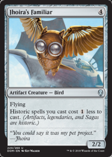 The last ability of Jhoira's Familiar doesn't reduce its own cost while you're casting it.