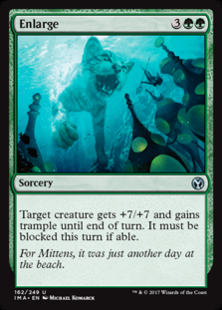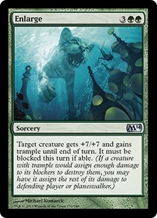 Target creature gets +7/+7 and gains trample until end of turn. It must be blocked this turn if able. (A creature with trample can deal excess combat damage to the player or planeswalker it's attacking.)
