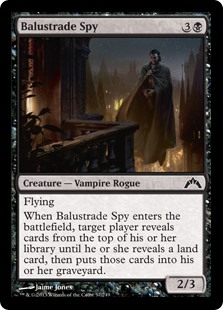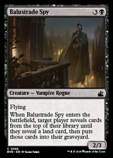 When this creature enters, target player reveals cards from the top of their library until they reveal a land card, then puts those cards into their graveyard.