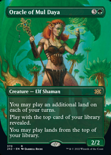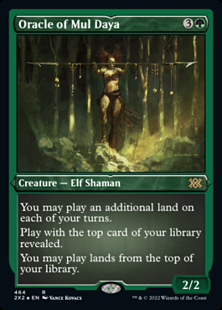 If you control more than one Oracle of Mul Daya, the effects of their first abilities are cumulative. If you control two, for example, you can play three lands on your turn.