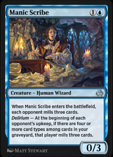 Delirium — At the beginning of each opponent's upkeep, if there are four or more card types among cards in your graveyard, tap target creature that player controls.