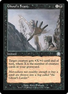 Target creature gets +X/+0 until end of turn, where X is the number of creature cards in your graveyard.