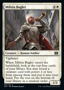 When this creature enters, look at the top four cards of your library. You may reveal a Human card from among them and put it into your hand. Put the rest on the bottom of your library in any order.