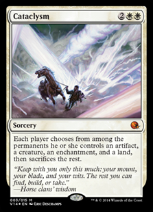 Each player chooses from among the permanents they control an artifact, a creature, an enchantment, and a land, then sacrifices the rest.