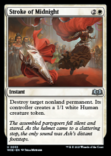 Destroy target nonland permanent. Its controller creates a 1/1 white Human creature token.