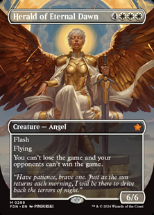 If you control Herald of Eternal Dawn in a Two-Headed Giant game, your team can't lose the game and the opposing team can't win the game.
