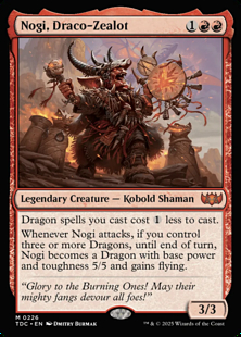 Whenever Nogi attacks, if you control three or more Dragons, until end of turn, Nogi becomes a Dragon with base power and toughness 5/5 and gains flying.