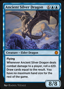 Whenever this creature deals combat damage to a player, roll a d20. You create a number of 1/1 blue Faerie Dragon creature tokens with flying equal to the result.