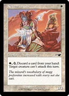 {W}, Sacrifice a creature: Target creature can't attack this turn.