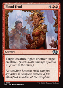 Target creature fights another target creature. (Each deals damage equal to its power to the other.)
