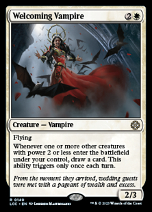 Whenever one or more other creatures you control with power 2 or less enter, draw a card. This ability triggers only once each turn.