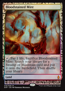 {T}, Pay 1 life, Sacrifice this land: Search your library for a Swamp or Mountain card, put it onto the battlefield, then shuffle.