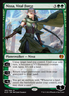 [+1]: Untap target land you control. Until your next turn, it becomes a 5/5 Elemental creature with haste. It's still a land.
