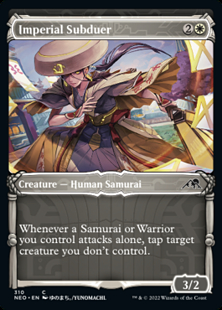 Whenever a Samurai or Warrior you control attacks alone, draft a card from Imperial Blademaster's spellbook.