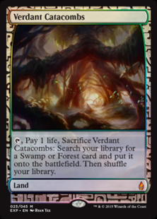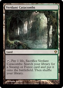 {T}, Pay 1 life, Sacrifice this land: Search your library for a Swamp or Forest card, put it onto the battlefield, then shuffle.