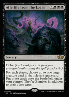 For each player, choose a creature card in that player's graveyard. Put those cards onto the battlefield under your control. They're black Zombies in addition to their other colors and types and they gain decayed. (A creature with decayed can't block. When it attacks, sacrifice it at end of combat.)