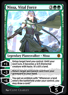 [+1]: Up to one target land you control becomes a 3/3 Elemental creature with vigilance, hexproof, and haste until your next turn. It's still a land.