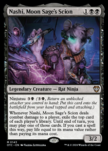 Whenever this creature deals combat damage to a player, that player exiles cards from the top of their library until they exile a nonland card. You may cast that card by paying life equal to the spell's mana value rather than paying its mana cost.