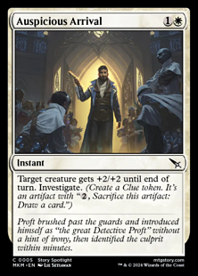 Target creature gets +2/+2 until end of turn. Investigate. (Create a Clue token. It's an artifact with "{2}, Sacrifice this token: Draw a card.")