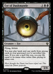 You may play lands and cast spells from among cards in your graveyard you've surveilled this turn. If you cast a spell this way, you pay life equal to its mana value rather than paying its mana cost.