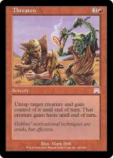 Untap target creature and gain control of it until end of turn. That creature gains haste until end of turn. (It can attack and {T} this turn.)