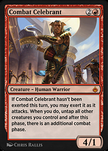 Combat Celebrant's ability untaps all of your creatures, not just the ones that are attacking.
