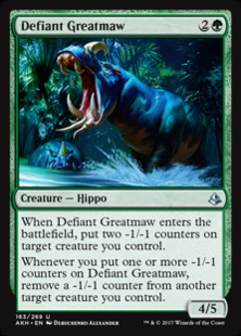 If you put enough -1/-1 counters on Defiant Greatmaw so that its toughness is 0 or less, its last ability triggers.