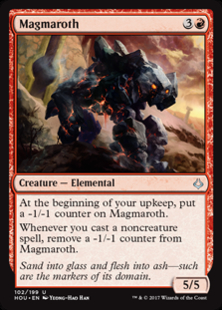 Magmaroth’s second ability resolves before the spell that caused it to trigger. The ability will resolve even if that spell is countered.