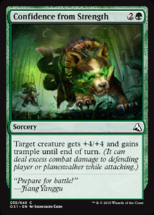 Until end of turn, target creature gains trample and gets +X/+X, where X is the number of creatures you control.