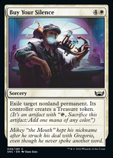 Exile target nonland permanent. Its controller creates a Treasure token. (It's an artifact with "{T}, Sacrifice this artifact: Add one mana of any color.")