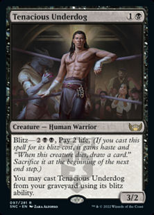 Blitz—{2}{B}{B}, Pay 2 life. (If you cast this spell for its blitz cost, it gains haste and "When this creature dies, draw a card." Sacrifice it at the beginning of the next end step.)