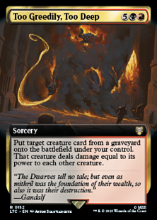 Put target creature card from a graveyard onto the battlefield under your control. That creature deals damage equal to its power to each other creature.