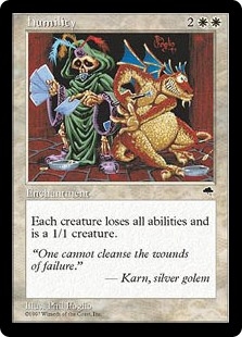 Removes all creature abilities. This includes mana abilities. Animated lands will also lose the ability to tap for mana.
