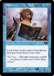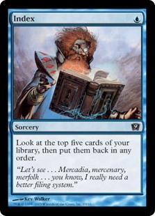 Look at the top five cards of your library, then put them back in any order.