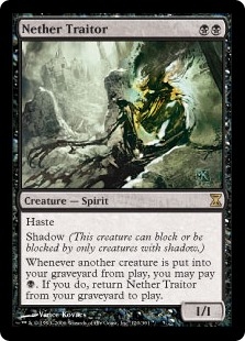 If Nether Traitor and another creature are put into your graveyard at the same time, Nether Traitor's ability won't trigger. This is because it must be in your graveyard before the creature dies in order for its ability that returns it to the battlefield to trigger.