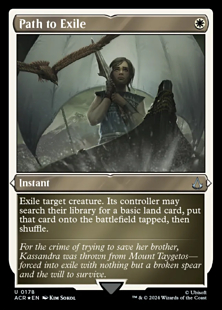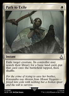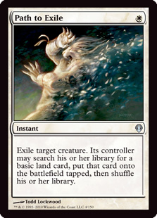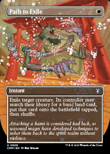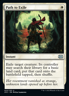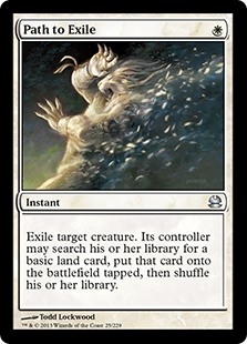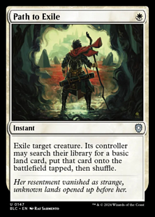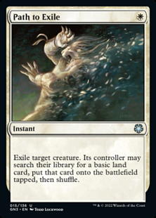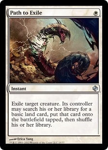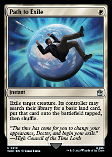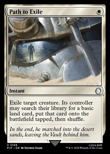 Exile target creature. Its controller may search their library for a basic land card, put that card onto the battlefield tapped, then shuffle.