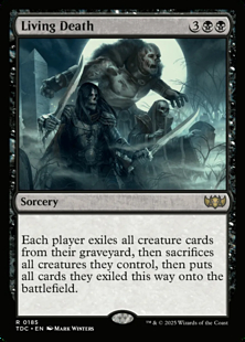 As Living Death resolves, all players exile their creature cards from graveyards at the same time. Then all players sacrifice all creatures they control at the same time. Then all players put all creatures they exiled onto the battlefield at the same time.